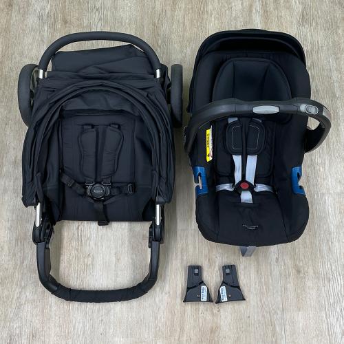 ベビーカーとチャイルドシート(ベビーシート)の一体型トラベルシステム。